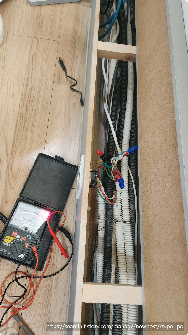 방문을 하여 내려가는 콘센트선로의 누전여부를 체크하여 점검합니다.