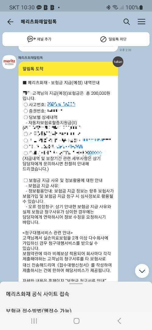 3년지난 운전자 보험 메리츠 화재 보험금 청구하기