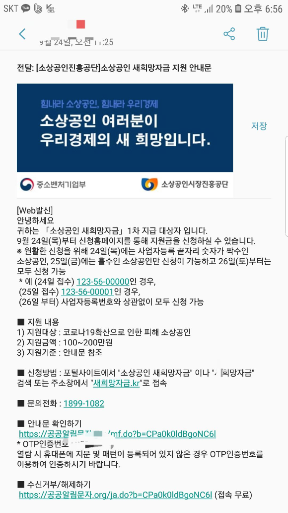 귀하는 「소상공인 새희망자금」1차 지급 대상자 입니다.
